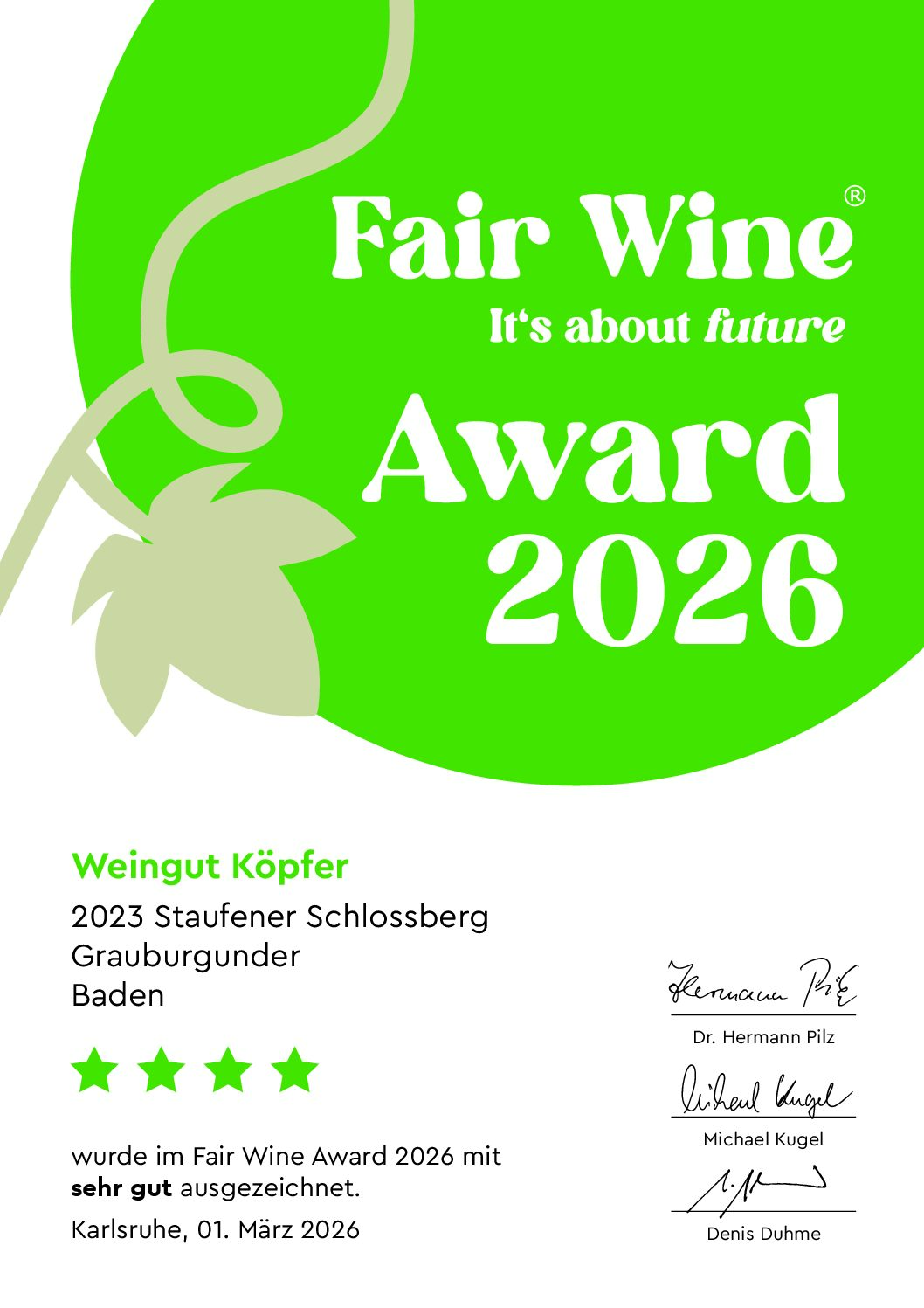 „hervorragend“ mit 4x Sternern beim fair wine award 2026